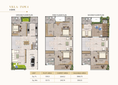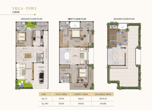 | Plot Size (Sq. Ft.) | Built-up Area 3 BHK (Sq. Ft.) | Built-up Area 4 BHK (Sq. Ft.) | Price |