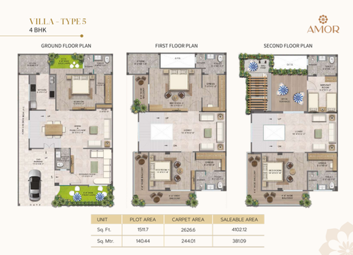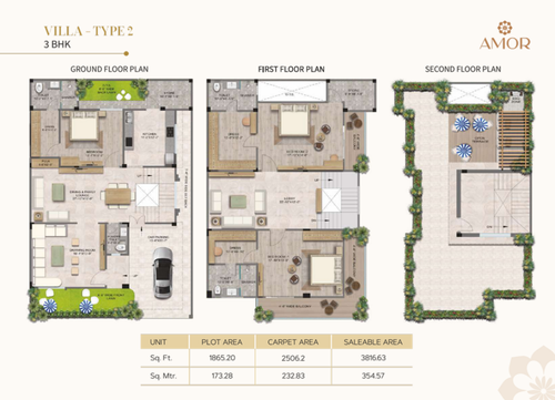 | Plot Size (Sq. Ft.) | Built-up Area 3 BHK (Sq. Ft.) | Built-up Area 4 BHK (Sq. Ft.) | Price |